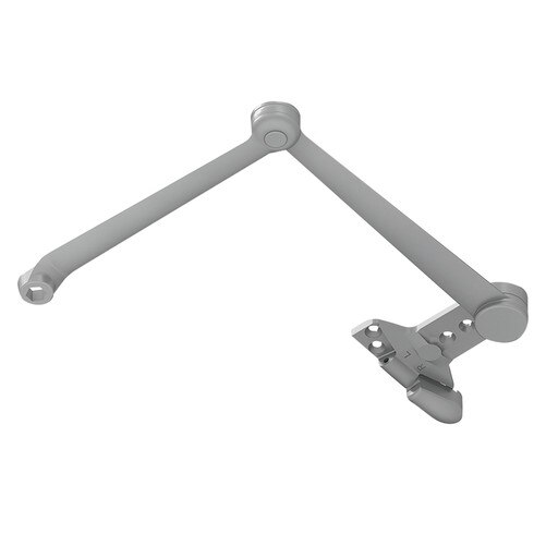 Spring Cush Arm, Solid Forged Steel Main Arm and Forearm with Spring Loaded Stop in the Soffit Shoe, Aluminum Painted Finish, Non-Handed